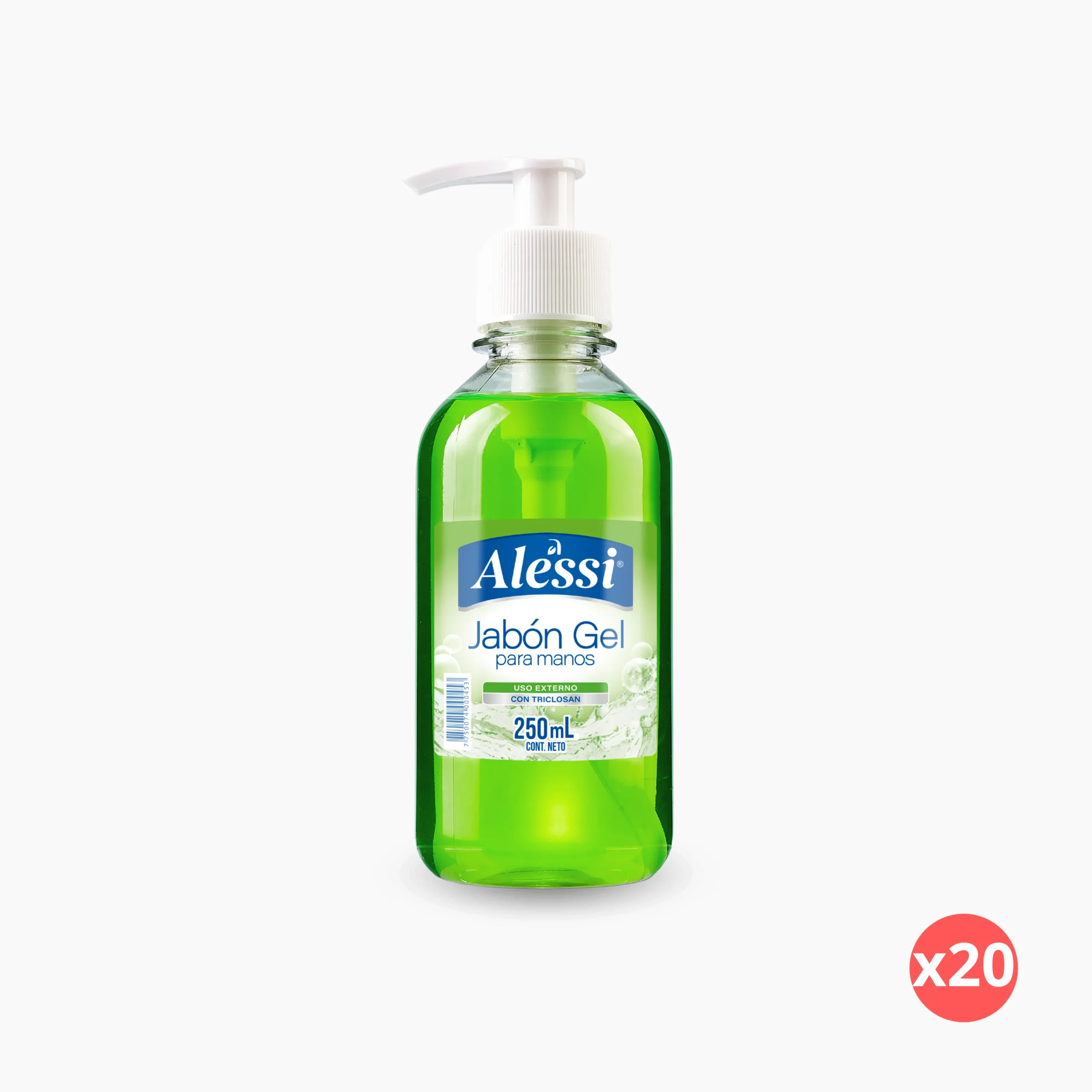 PACK x 20 UNIDADES – ALESSI JABÓN GEL ANTIBACTERIAL (líquido) (250 ml.) Jabón gel antibacterial (líquido) brinda una limpieza y desafección eficiente, dejando la piel humectada y con una fragancia suave y agradable.