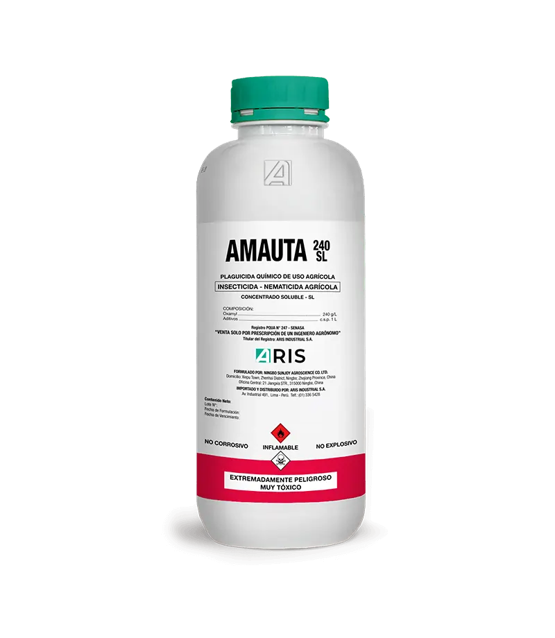 Amauta 240 SL es un insecticida-nematicida de actividad sistémica localizada dentro de la planta. Controla insectos minadores, chupadores que atacan tallos, hojas, raíces, etc. Además, su efecto nemastático se debe a la interrumpción del ciclo de vida y otros procesos fisiológicos.