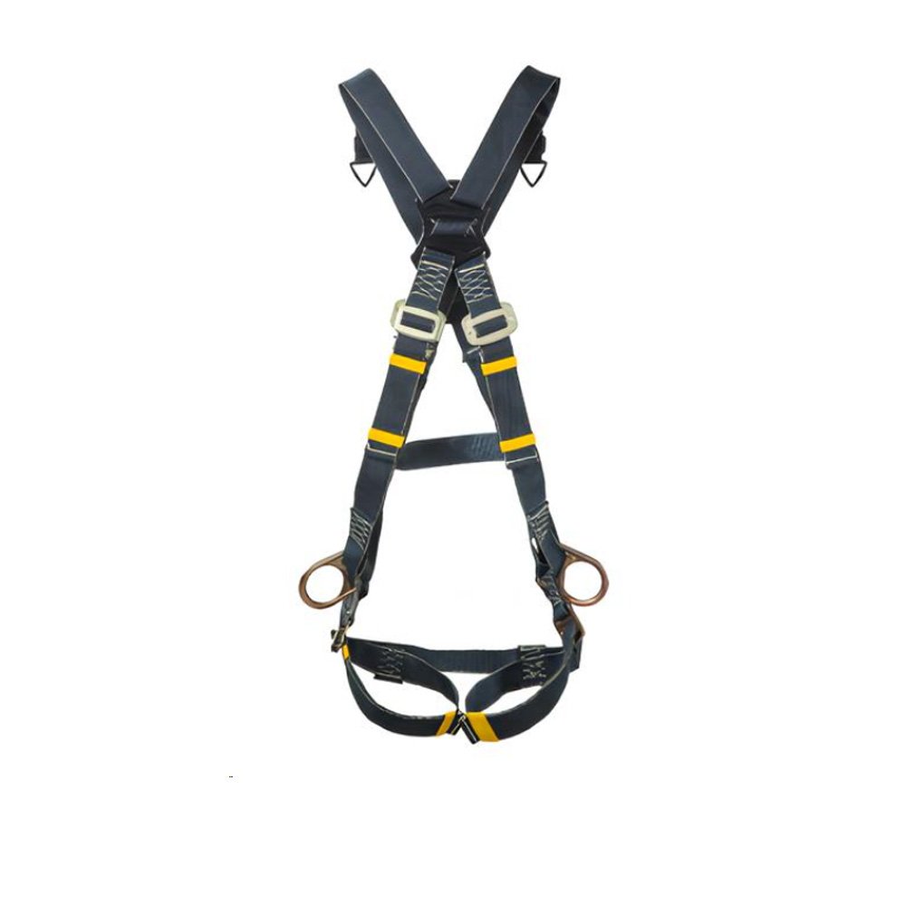 Arnés tipo H, con 4 anillos D y hebillas de conexión rápida, de material de poliéster Repel, con almohadilla en hombro, espalda y pierna. Para aplicaciones de escalada y posicionamiento.