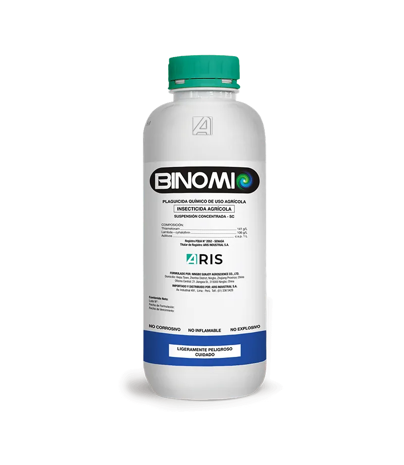 Binomio es un insecticida translaminar y sistémico que otorga acción de contacto e ingestión sobre insectos masticadores y picadores-chupadores.