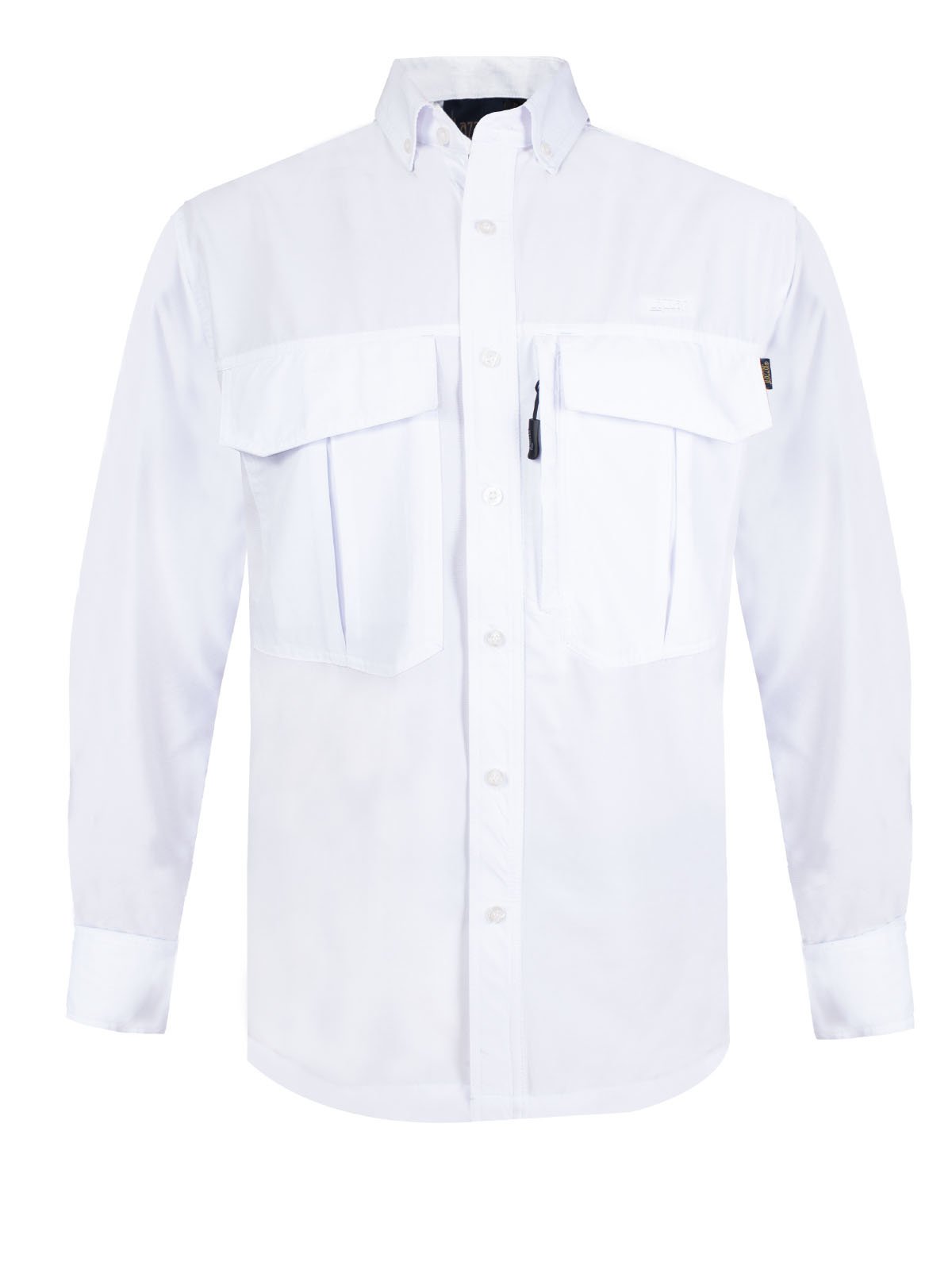 Diseñada con dos bolsillos frontales con cierre de velcro, bolsillo izquierdo con cierre oculto, ventilación trasera con malla, mangas enrollables con pestaña en el botón y soportes que pueden convertirse en manga corta.