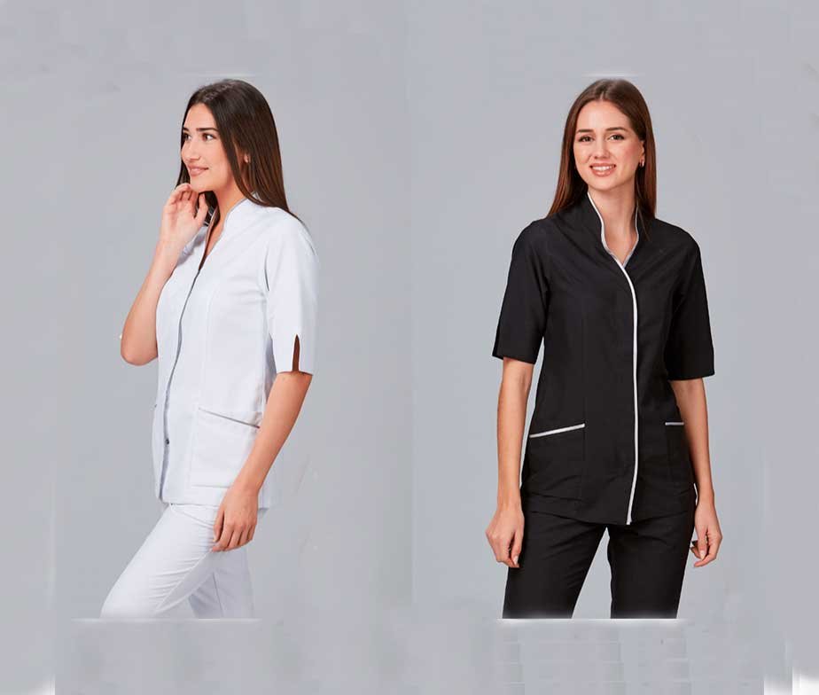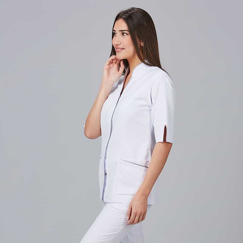Casaca sanitaria y peluquería microfibra. Elegante y funcional chaqueta Cuba de mujer de alta calidad. Diseño original y elegante que te permite destacar en el sector de la peluquería, salud, belleza y cuidado personal. Tejido microfibra: antibacterias, repelente a los líquidos, muy transpirable, no necesita plancha, tolerante a salpicaduras de lejía. Lavable 90 grados. Ideal para peluqueros, centros de belleza, spas, balnearios, centros de estética o sanidad.