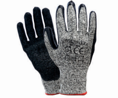 – Guante hecho en poliesterm 10 Gcon palma de latex y un baño