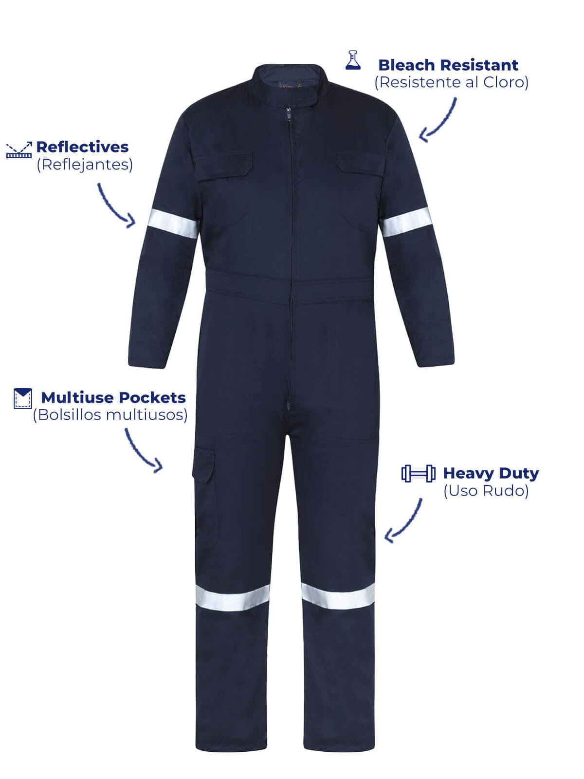 -con cintas reflejantes, 60% Alg. 40% Pol. Naranja: Manga Larga con cintas reflejantes, 100% Alg. Pemex. Gris mod. Corea: Sin Mangas. 60% Alg. 40% Pol.